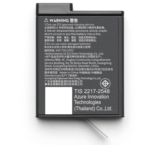 Designed specifically for the Osmo Action 5 camera, this lithium-ion Extreme Battery Plus from DJI has a 1950mAh/7.5Wh capacity and a 3.87V power output. The battery allows you to record up to four hours of video with the Osmo Action 5. They are also compatible with the Osmo Action 4 and 3 when the cameras are updated to the latest firmware.