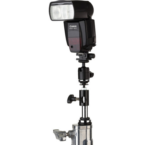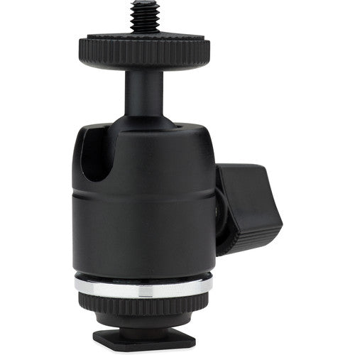 Add some control and versatility to your accessory mount with this Mini Ball Head with Hot Shoe Adapter from Kupo. It easily slides into your camera's hot shoe and also offers a female 1/4"-20 thread on the foot for stand mounting. At the top is a locking ball head with a 1/4"-20 male thread that is compatible with a variety of accessories.