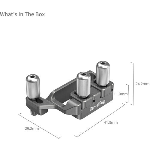 Compatible with select SmallRig HawkLock camera cages for Sony FX3 and FX30 cameras, this USB-C & Multi Cable Clamp supports and secures the Multi and USB-C connections on the side of your camera. The clamp attaches to your compatible cage with the included thumbscrew, and the cables are secured using two additional thumbscrews. Its aluminum and stainless steel construction creates a durable and lightweight clamp, and its thumbscrew design provides easy mounting and removal.