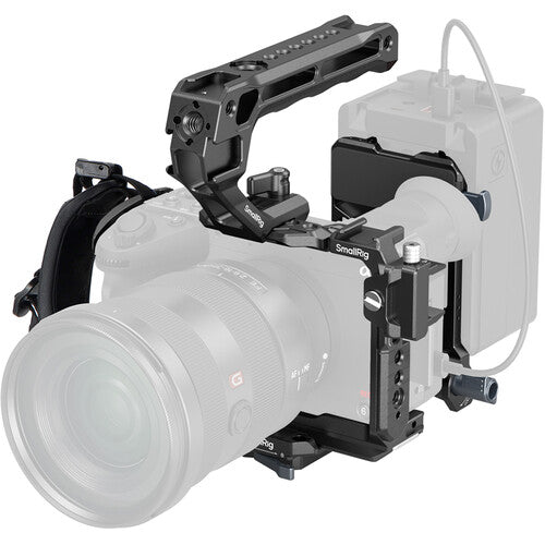 This SmallRig Advanced Camera Cage Kit is designed to protect your Sony FX2 and expand its mounting options to create a handheld rig that works for your production. The advanced kit configuration adds a V-mount battery plate, top handle, and wrist strap. The cage features a detachable top plate with a NATO rail to attach the Sony XLR top handle or other top handle options without interfering with the EVF.